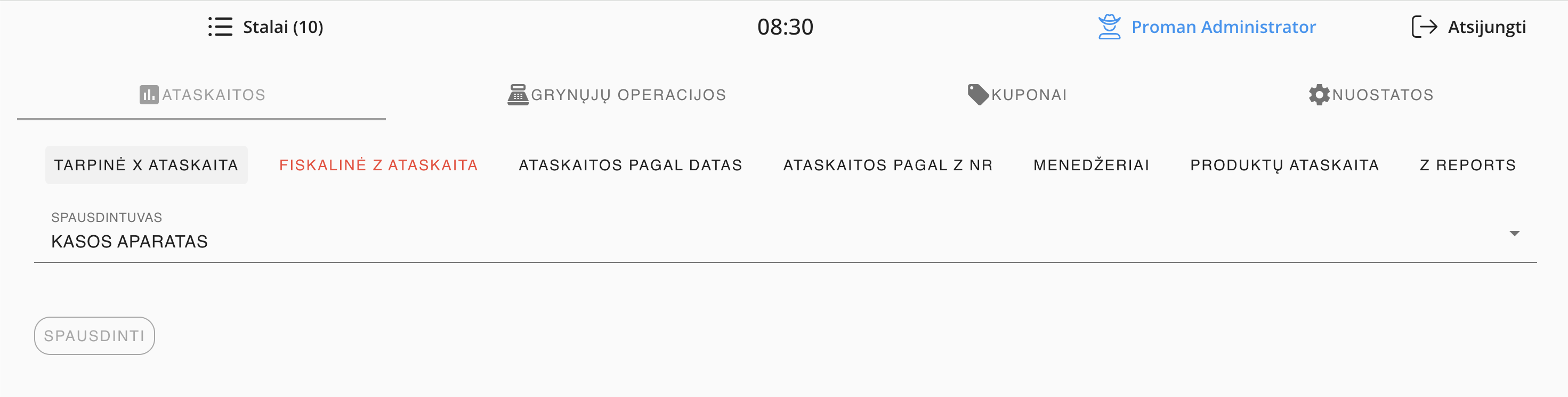 X ir Z ataskaitos, ataskaitos pagal datą, darbuotoją, produktą ar Z numerį — spausdinamos tiesiai iš kasos aparato. Grynųjų operacijos registruojamos ir spausdinamos vietoje.