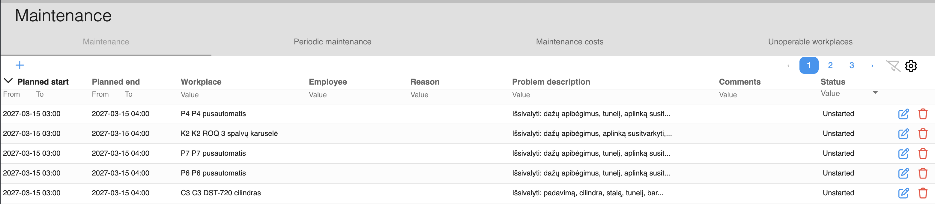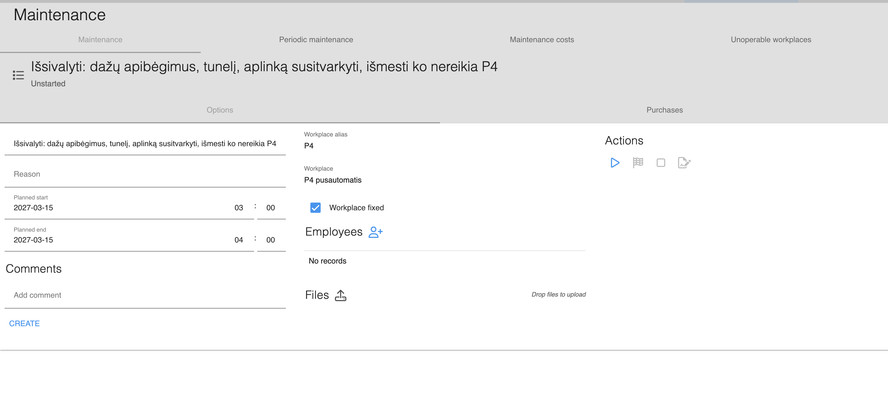 The SmartOn backoffice lets you plan preventive and periodic maintenance for every workplace. Assigned employees, deadlines, reasons, and comments — all in one place.